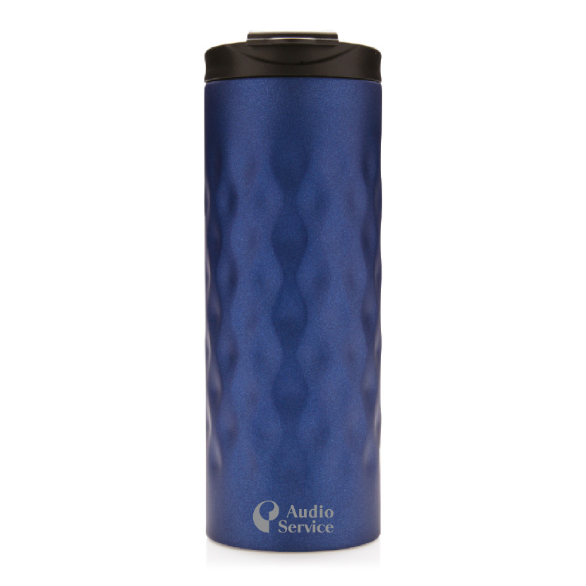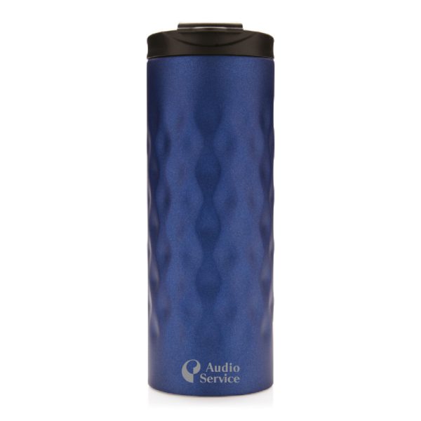 Double-walled stainless steel tumbler with geometric cut design.