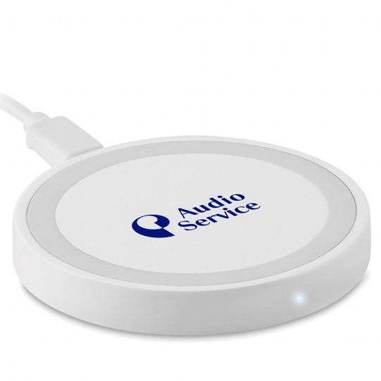 Wireless charger. Connect device to your computer, place smartphone on it to begin charging. Lit when charging. Output: DC5V/1A (10W). Compatible with latest Androids, iPhone® 8 and newer.
